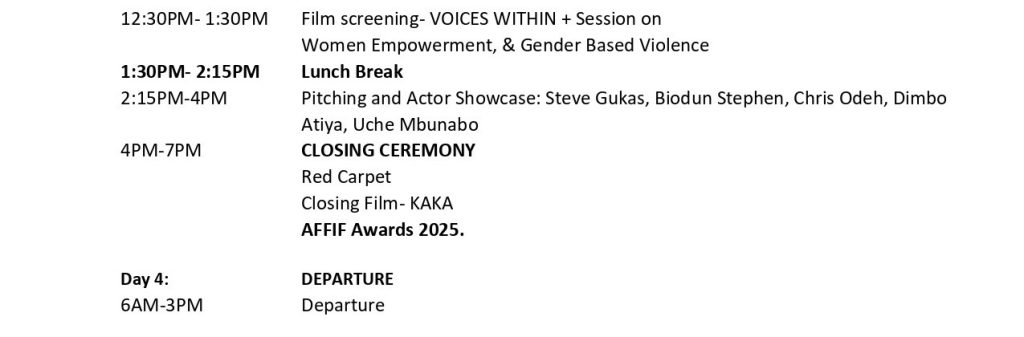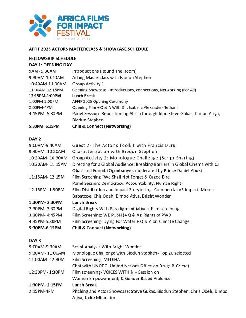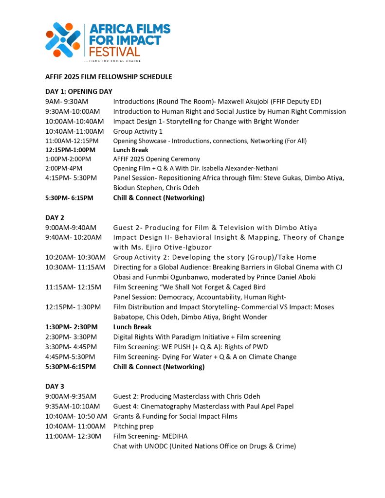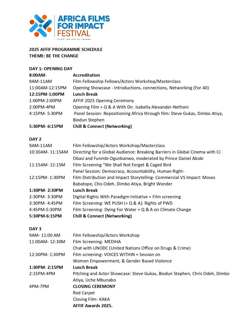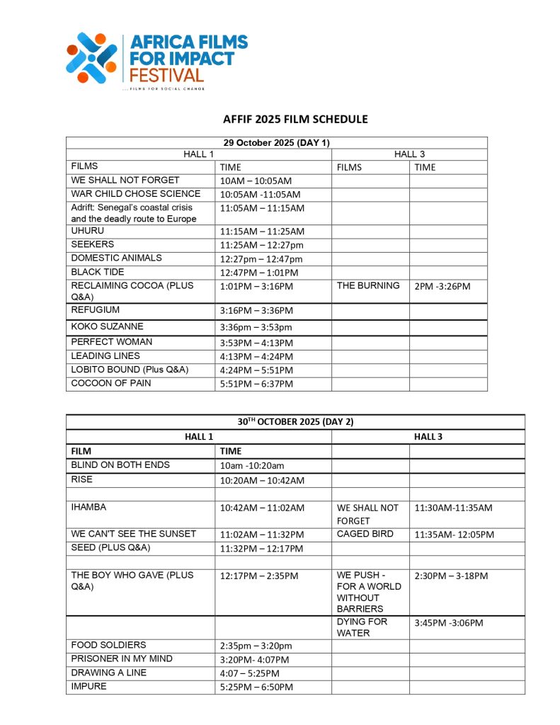 The 2025 Africa Films for Impact Festival will climax with an Impact Award Ceremony, which will premiere the closing film for the festival, and also host other performances including Music, Poetry/Spoken Word, and the Impact Awards.