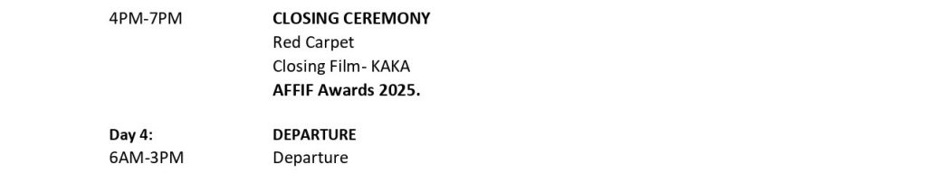 AFFIF 2025 will screen 50 films (short & feature narrative, documentary and animation films) across the 3 day film festival.